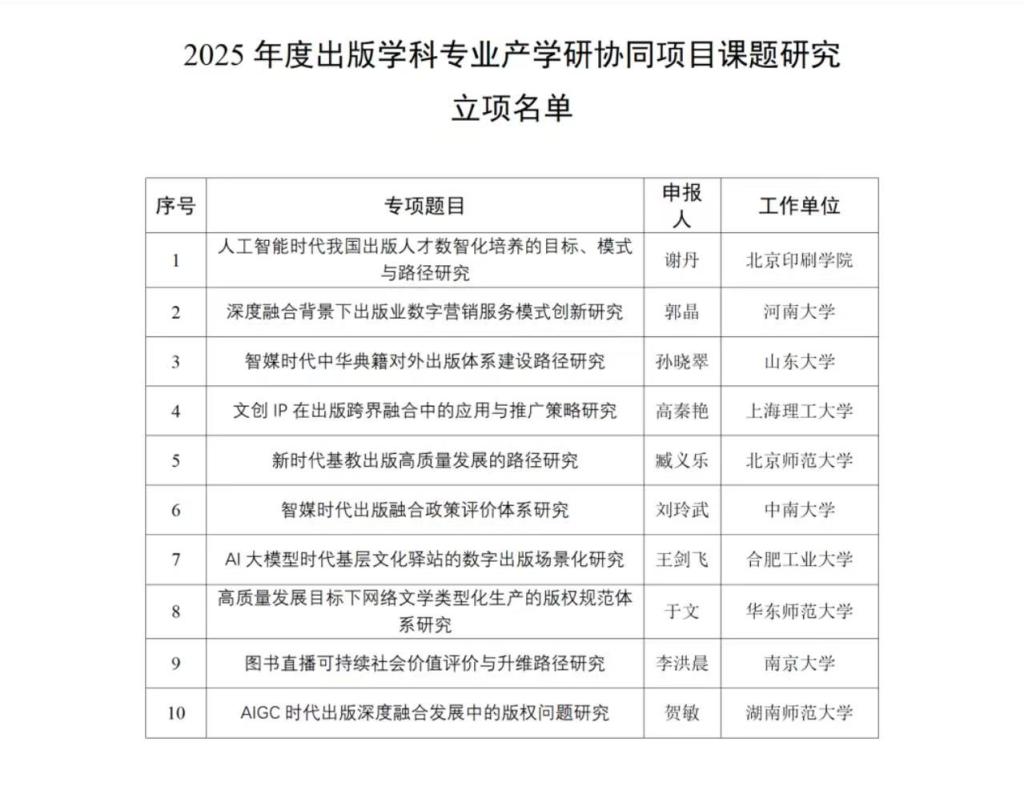 公司获2025年度出版学科专业产学研协同项目立项