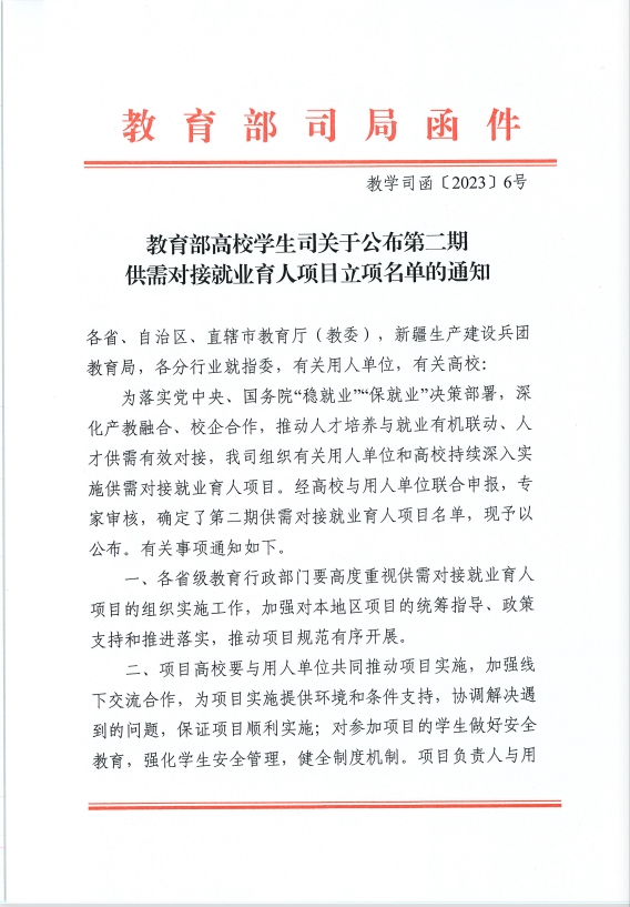 公司唐苗老师获教育部第二期供需对接就业育人项目立项