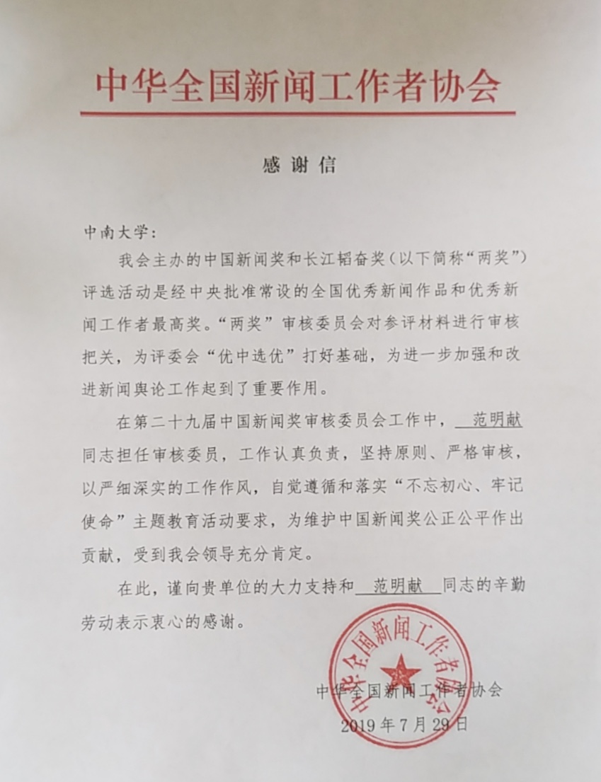 文新院范明献副教授担任第二十九届中国新闻奖评审委员并获充分肯定