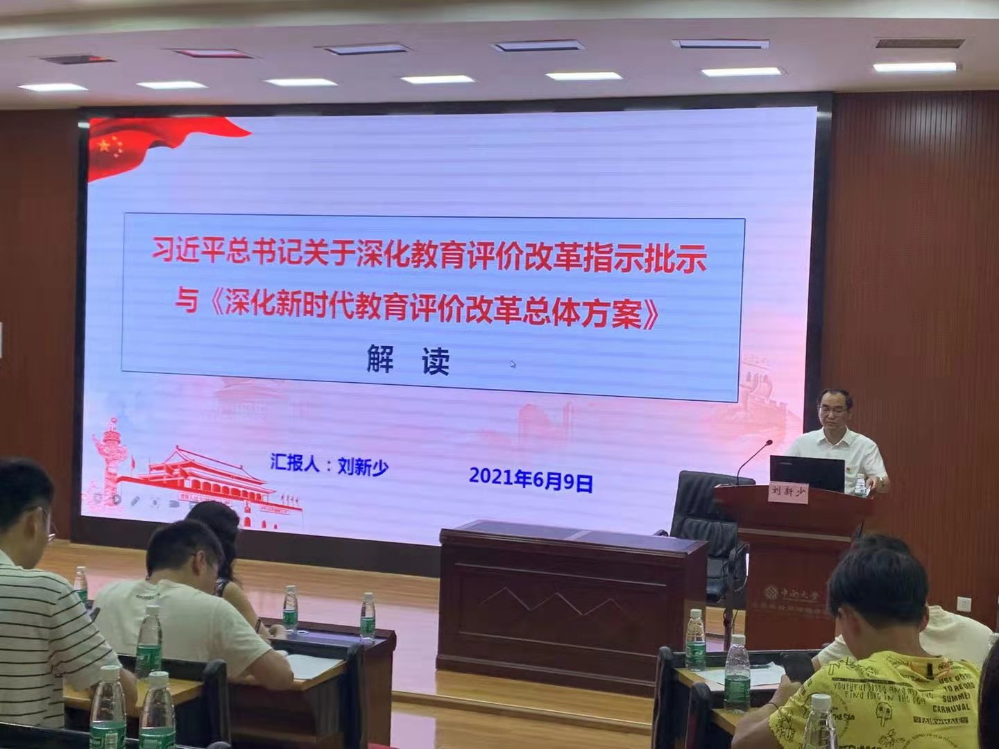 刘新少副经理着重从两个方面对习近平总书记关于教育的重要论述、特别是关于深化教育评价改革指示批示进行了深入解读。一是深刻理解习近平总书记关于深化教育评价改革的指示批示精神,深度阐释习近平总书记关于教育评价“为什么改”“改什么”“怎么改”的指导思想;二是从理论和实践层面阐述了我们应当如何贯彻落实中共中央、国务院印发的《深化新时代教育评价改革总体方案》,着重提出要坚持“破”“立”结合推进教育评价改革,促进公司教育治理现代化。