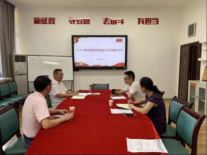 2021年7月12日上午10点,球王会官网文学与新闻传播公司党史学习教育领导小组成员在234党员活动室召开党建工作专题会议,罗军飞书记主持会议,邓栗副书记、刘新少副经理、学工办主任唐苗参加会议。