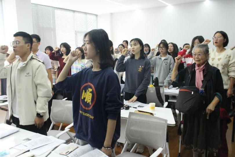 最后,在现场庄严肃穆的气氛下,陈赫老师带领支部成员重温入党誓词,全体成员举起右手,以坚定的话语宣誓:“我志愿加入中国共产党,拥护党的纲领,遵守党的章程,履行党员义务,执行党的决定,严守党的纪律,保守党的秘密,对党忠诚,积极工作,为共产主义奋斗终生,随时准备为党和人民牺牲一切,永不叛党。”重温入党誓词,坚定初心使命,党支部成员在学习感悟中强化了忠诚,在思想上得到了一次升华。