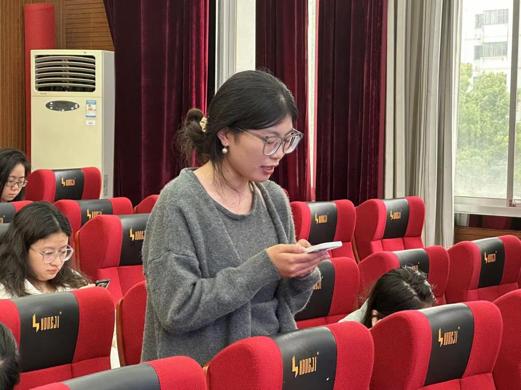 硕士生中文党支部书记贺天琪带领支部党员对培训内容进行了简要回顾,率先分享了自己的学习心得,各位同志随即展开热烈讨论,积极交流自己从中收获的心得感悟。