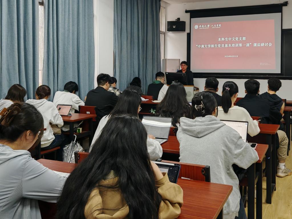 为深入学习贯彻习近平新时代中国特色社会主义思想和党的二十大精神,巩固深化主题教育成果,加强党员党性修养,2024年4月21日,球王会官网党委面向师生党员开展集中培训学习。本科生中文党支部全体成员于文法楼集中观看直播并开展学习心得交流研讨会。会议由党支部书记易孝慈主持。