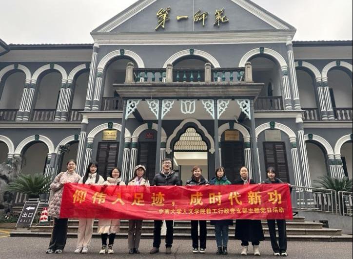 随后,党支部一行人踏上了前往湖南第一师范的寻根之旅,如习近平总书记在湖南考察时所说:“国家要强大,必须办好教育。一师是开展爱国主义教育、传承红色基因的好地方,要把这一红色资源保护运用好。”在这片孕育了无数革命先驱的热土上,党员们不仅参观了毛泽东纪念馆,通过一件件珍贵的文物、一幅幅生动的历史照片,近距离感受到了毛泽东同志从青年时期就展现出的远大抱负和革命情怀,更在习近平总书记的话语中找到了前行的方向:“为中国人民谋幸福,为中华民族谋复兴,是中国共产党人的初心和使命,是激励一代代中国共产党人前赴后继、英勇奋斗的根本动力。”新党员袁俊同志分享感悟:“在展馆中,我仔细观看了毛主席青年时期的笔记,了解了他与同学们深入农村调研、脚踏实地了解国情的实践行动,无论是他在喧嚣闹市中静心苦读的坚韧,还是他笔下流淌的志向与意趣,都给予了我极大的启示,让我深刻领悟到了革命先辈的崇高精神与坚定信念。”党支部书记赵晓岑讲到:“希望每一位党员都能将这份红色记忆内化于心,外化于行,让红色基因在新时代绽放出更加璀璨的光芒。”