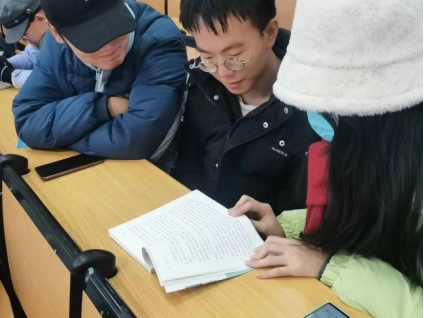 接着,读书分享会进入书目推荐环节。参与者们在卡片上写下推荐理由并夹在书中,上台交换书籍与寄语卡片。交换完毕后,大家围坐在一起讨论书本内容的细节,轮流发表自己的感想,畅谈阅读感悟。在交流讨论中,文理思维交汇,多元思想碰撞,同学们纷纷表示收获颇丰。
