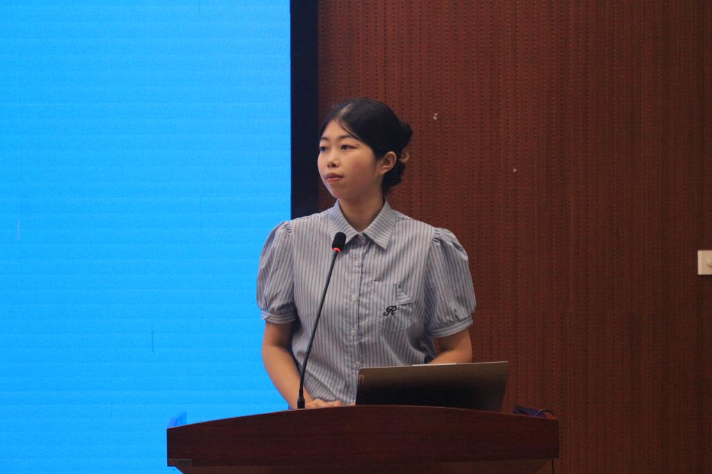 王旻涵着重介绍了安全保障的相关知识。她强调,要提升新生安全意识,防范六大骗局。同时,她也提醒同学们关注寝室消防安全、出行交通及个人饮食卫生。