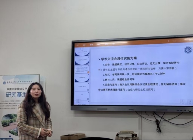 组长张秋瑾介绍了学术交流会的具体实施方案。未来交流会预计每两周举办一次,主要在工作日进行。交流会的内容将涵盖选题研讨、读书分享、论文评议、论文分享、学术答疑等方面,与课题组的研究紧密相关。