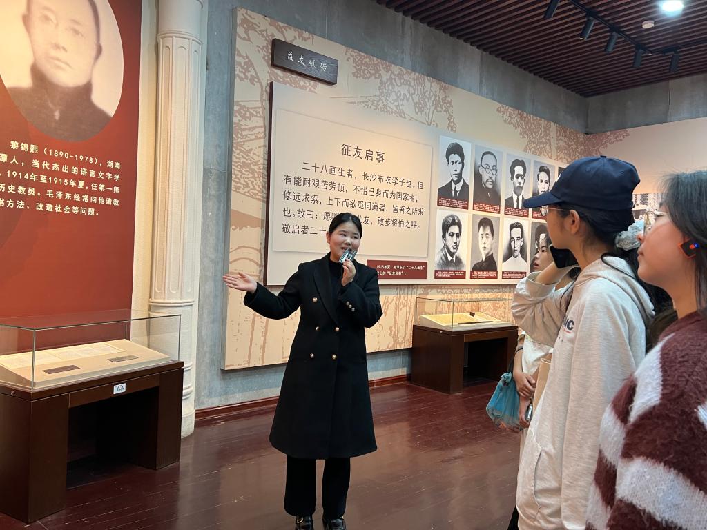 “千年学府,百年师范”,同学们跟随讲解员的步伐漫步在展厅中,先后走过了湖南省第一师范各个展厅,聆听讲解员讲述着青年毛泽东的求学经历的点点滴滴。