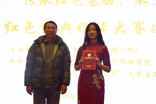 易险峰副部长对本次比赛举办目的表示肯定,认为比赛激起了大家对今日中国辉煌来之不易的感叹。同时,他对本次比赛进行总结点评,并建议同学们通过增加阅读量,来提高个人内涵。最终,来自文新院的《深海,深海》队伍荣获特等奖,来自资生院的《一点英雄气,千秋当凛然》等2支队伍荣获一等奖,来自法公司的《青春中国》等3支队伍荣获二等奖,来自外国语公司的《大漠敦煌》等7支队伍获得三等奖。至此,本次红色经典诵读大赛圆满落幕。
