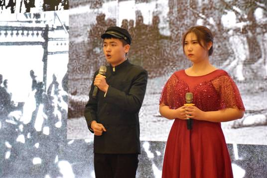 大赛还特邀2支职工团队作为嘉宾进行表演,他们用声情并茂、充实生动的朗诵展现他们对中国红色文化的理解。来自赤道几内亚的佩德罗用朗诵作品《沁园春·雪》带同学们领略伟人“还看今朝”的磅礴气势。国际教育公司的夏花、覃裴宝玉、巴菲与巴沙尔则以一首《青春万岁》诠释青春力量,表达了对中国繁荣富强的美好祝愿。