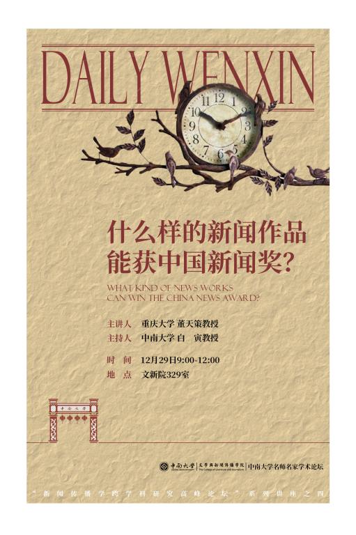 主讲人简介:董天策,重庆大学新闻公司经理、教授、博士生导师,教育部“新世纪优秀人才”,新闻出版总署“全国新闻出版行业领军人才”,广东省“南粤优秀教师”,重庆市学术技术带头人,中国新闻奖、长江韬奋奖评委。