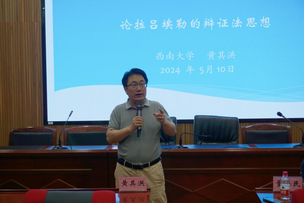 5月10日晚,西南大学教授、英国肯特大学访问学者、西方马克思主义研究所所长黄其洪应邀来到球王会,为公司师生带来题为“再议拉吕埃勒的辩证法思想”的精彩而颇具前沿性的学术讲座。哲学系丁瑞莲、刘淘宁、向玉竹、姚勇、杨畅等老师参加了讲座。讲座由公司哲学系副教授董山民主持。