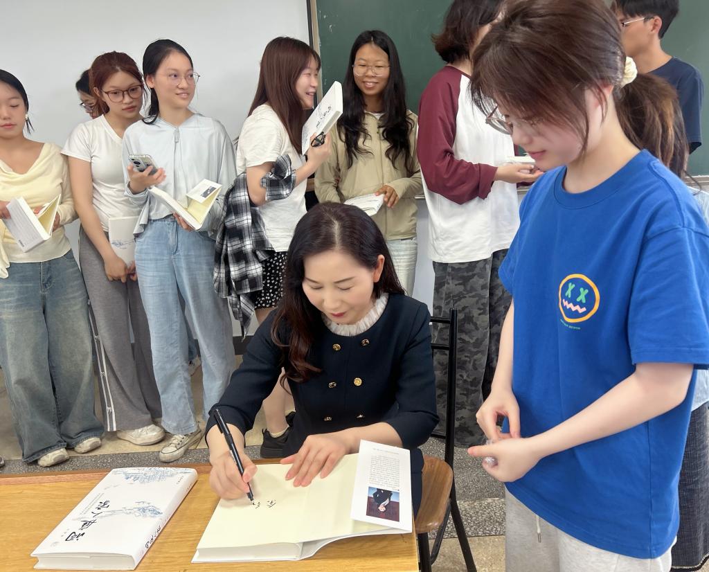 讲座结束后,余红一一为同学们亲笔签书,以新时代湖区作家的情怀,助力文学薪火相传。