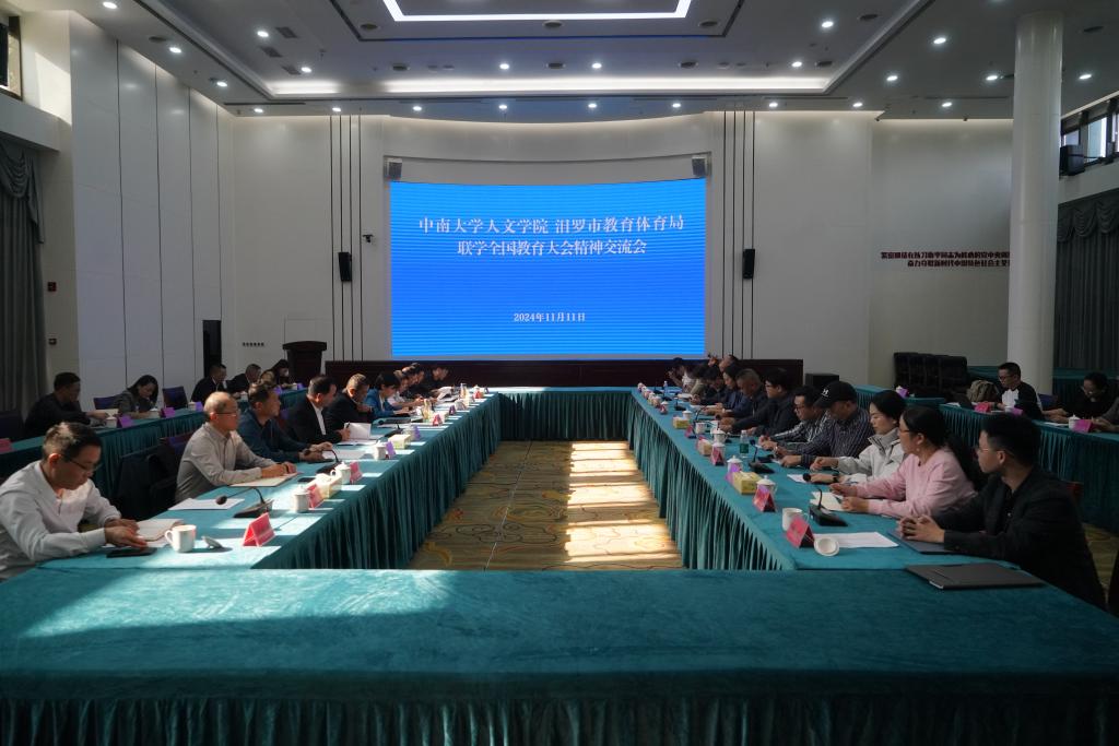 双方与会人员围绕研究生教育、旗下产业、团队建设与科研、基础教育、融媒体发展建设、大中小思政教育一体化等方面,就如何贯彻落实全国教育大会精神、深化校地合作,进行了交流探讨,大家表示,要坚持“立德树人”根本任务,结合汨罗丰富的文化资源,发扬优秀传统文化、红色文化、社会主义先进文化,坚定文化自信,夯实新时代文化内核。