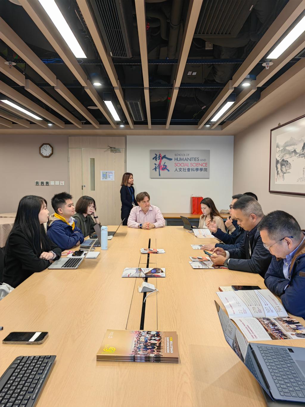 12月11日,访问团与香港中文大学新闻与传播公司梁海教授进行座谈。梁海教授介绍了新闻与传播公司的基本情况,包括团队规模、招生要求及与内地高校现有合作项目。
