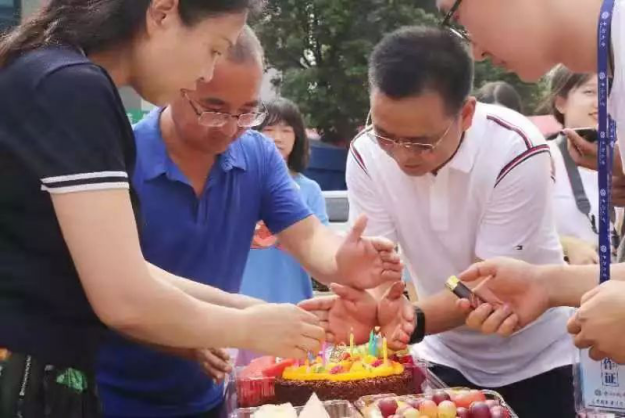此外,升华公寓26栋前文新院迎新点处还举行了一场热烈的新生生日会,罗军飞书记、邓栗副书记、辅导员唐苗老师、辅导员周婷老师为潘焱、刘宇两名新生庆祝18岁生日。在生日会现场,学长学姐们围成一圈,共同为两位寿星唱生日快乐歌。伴随着欢快的歌声,两位寿星和家长、领导老师们一起点燃蜡烛,并许下生日愿望。