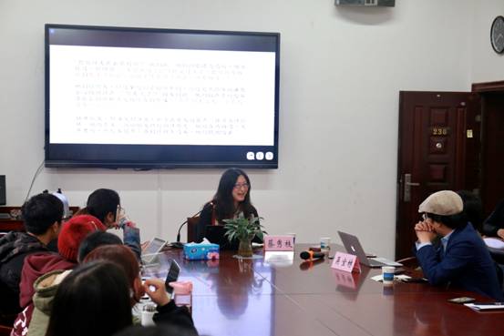 讲座伊始,蔡秀枝教授首先对主题作出诠释。她指出,在标题“符号与叙事”之下潜藏着一个暗示:这场讲座是与语言学密切相关的。语言是文本的基底,从语言发展出符号,若想要理解、诠释、批判符号产生的作品,就必须对语言符号所作出的叙事稿子进行解读,这就要求我们从过去的“作者论”出走,回到文本本身。那如何解读这“叙事稿子”?副标题“意义衍生、行动与现实之镜”便是其解读路径。首先探究意义的衍生机制,然后跟踪意义传达中的行动(语言符号本身具有行动功能),最后明确现实世界与文学所呈现的时空是有隔阂的,个体所认知的现实与其意义衍生、行动存在距离和落差。