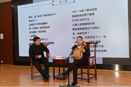 在特点方面,王志敏先生通过弹唱《宝玉哭灵》生动展现了正文的不同唱腔;用表演《武松大闹观音堂》诠释了“一人多角,跳进跳出”的表现特征;就李白的《黄鹤楼闻笛》等阐明了即兴弹唱这一表演形式。