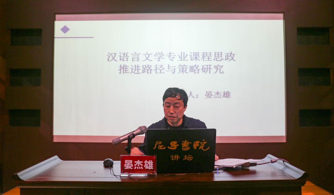 晏杰雄副教授以“汉语言文学专业课程思政推进路径与策略研究”为课题,就目前的“课程思政”建设路径的研究现状进行了探讨。他指出,目前“课程思政”的建设路径探究过于宏观,应该针对具体专业做深入研究,针对性地解决实际问题,其次,目前课程思政建设缺乏实践经验,在高校、公司、教师、员工四个主体上的分工不够明晰。本课题旨在在国家教育方针的指导下,结合部分高校实践经验,从生成路径的角度探索汉语言文学专业课程与思政教育元素有机融合的可行性问题。在报告中,晏杰雄副教授阐述了课题的研究思路与研究内容,并明确研究重点是处理好本专业的审美性与课程思政的教育性之间的关系,拿捏好柔性管理和刚性约束融合推进的平衡限度。他认为发挥汉语言文学“寓教于乐”优势,深度实现文学与育人的融合,助推汉语言文学专业创新型、应用型合格人才的培养是该课题研究的特色所在。