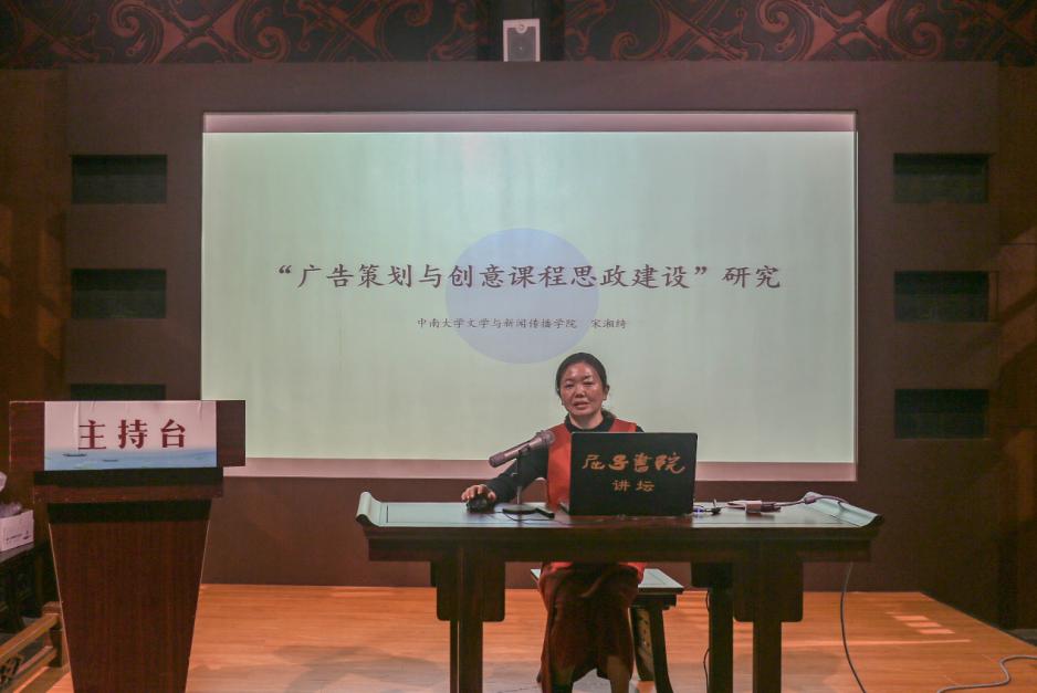 宋湘绮副教授以“广告策划与创意课程思政建设”研究为课题,阐述了该课程的基本信息与专业目标以及教学内容的选择与安排,并着重介绍了课程教学大纲改革的新旧对照情况,提出可行性分析结论和建设计划与预期成效,旨在让更多员工在学习广告创意的过程中能够树立品牌意识,提高思想境界,培养人文情怀。