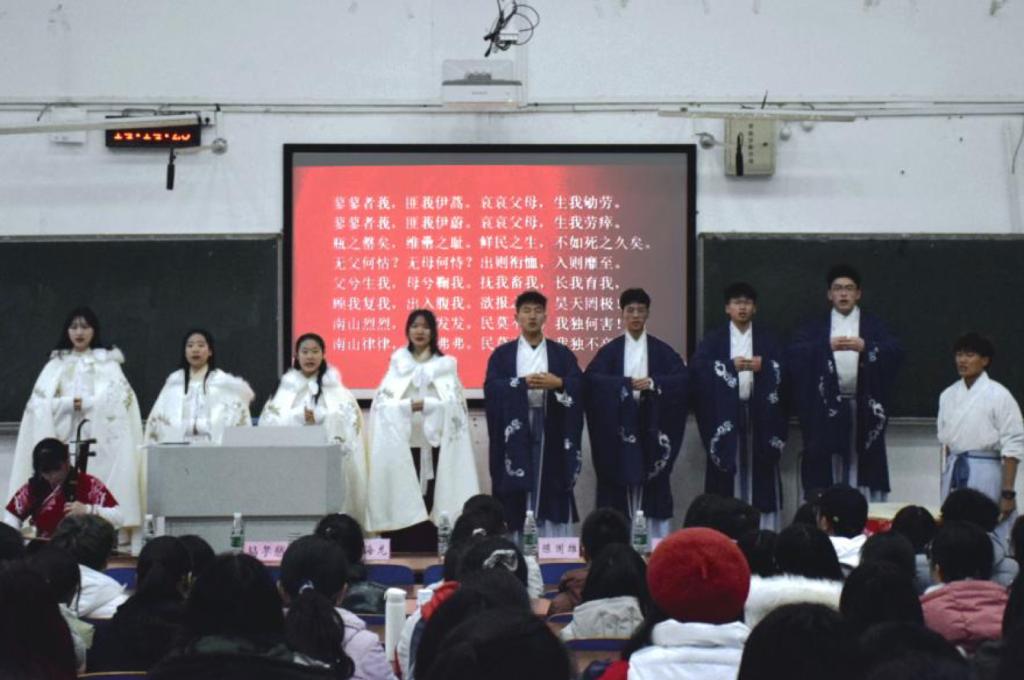 会议伊始,20级同学为大家带来精心排练的诗经《小雅•蓼莪》的吟唱,吟唱唱出了同学们的专业素养,也展现了同学们对父母的拳拳孝心,彰显球王会官网立德树人教育的优秀成果。
