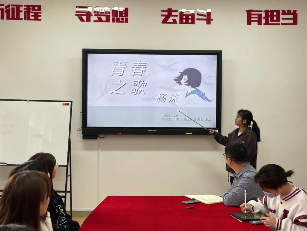 张欣小组给大家分享了杨沫的长篇小说《青春之歌》,作品是作者以亲身经历为素材创作的半自传体小说,小说以20世纪30年代日本侵华过程中发生的“九·一八事变”到“一二·九运动”的爱国员工运动为背景,描写了女主人公林道静的成长故事。小组成员认为该部作品构筑了革命历史的经典叙事,也揭示出知识分子成长道路的历史必然性,是员工和知识分子题材作品中的优秀成果,有很大教育作用。