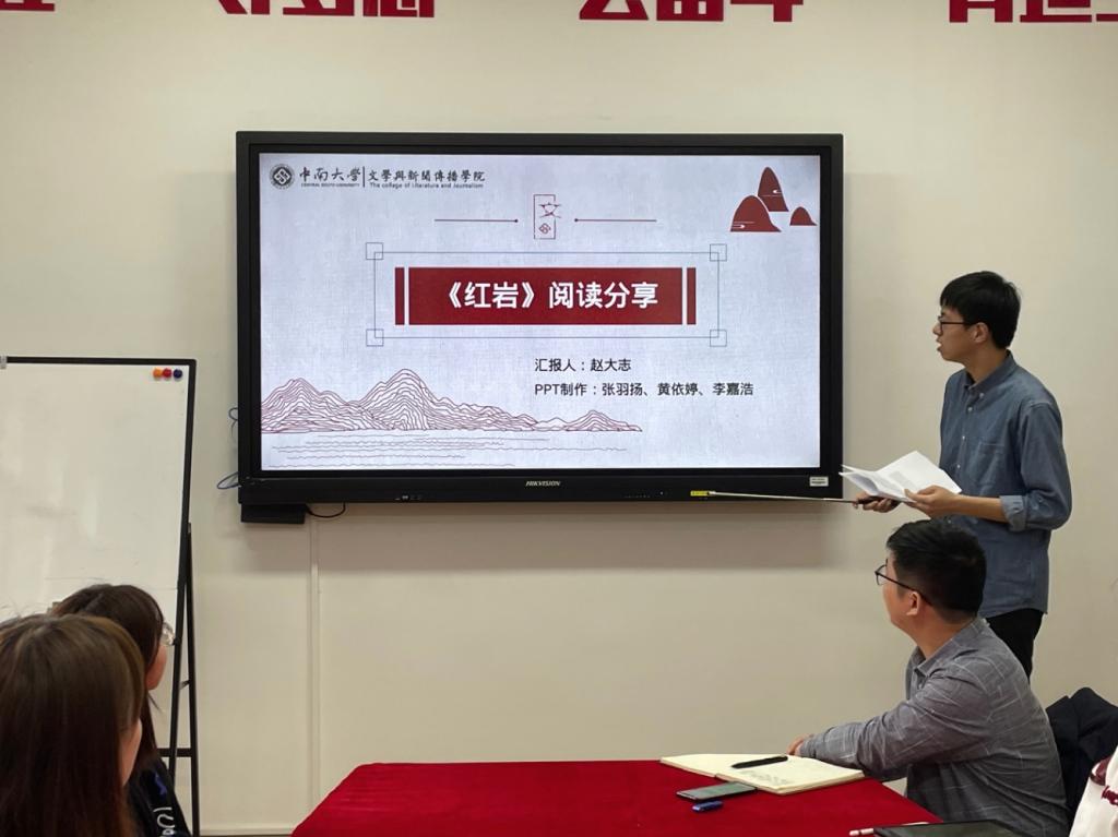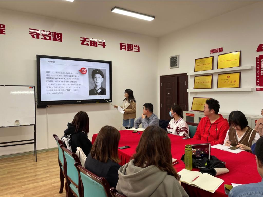 沈雪彤小组给大家分享了梁斌创作的长篇小说《红旗谱》,作品描写了冀中地区“反割头税”斗争和保定二师的员工爱国运动,真实地反映了从第一次国内革命战争前后到“九·一八”事变时期北方社会错综复杂的阶级关系。小组成员认为这部作品展现了20世纪二三十年代中国共产党领导中国人民进行革命斗争的伟大历程,对我们学党史、知党恩有重要作用。