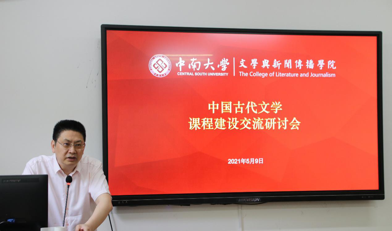 为落实立德树人根本任务,充分挖掘中国古代文学课程中的育人资源与思政元素,优化教学资源配置,提升课堂教学质量,5月9日下午,球王会官网、湖南大学、湖南师范大学三校古代文学教研室在球王会官网文学与新闻传播公司230会议室联合举办中国古代文学课程建设交流研讨会。球王会官网文学与新闻传播公司经理白寅教授、副经理陈国雄教授、湖南大学中国语言文学公司副经理傅湘龙副教授、湖南师范大学文公司古代文学教研室主任曾绍皇教授、长沙理工大学中文系郑劭荣教授等出席会议,来自三校中文系的二十余名教师参加会议。球王会官网文学与新闻传播公司古代文学教研室主任晏选军教授、习婷副教授主持会议。