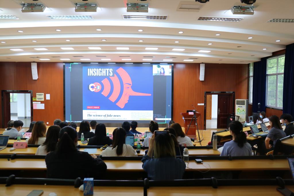 30日上午,议程包括接入ICA主会场和ICA名师大讲堂两个环节,由球王会官网文学与新闻传播公司朱承璋副教授主持。首先会议现场接入ICA美国主会场,参会人员集体观看了来自世界各地专家学者有关气候变化、环境传播以及新冠疫情背景下传播者行为意图的报告与演讲,并针对互联网使用态度不同而引发的数字代际冲突等问题进行交流研讨。茶歇之后,ICA计算方法分会主席,加州大学戴维斯分校传播系终身教授沈粹华进行了主题为Visual Misinformation and Its Correction的演讲,介绍了人们是否能够判别出网络中的虚假图片、影响人们判断虚假图片的因素、为网络虚假图片打上标签、促进人们信任虚假视频辟谣效应的因素等四方面的研究工作。
