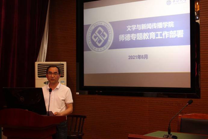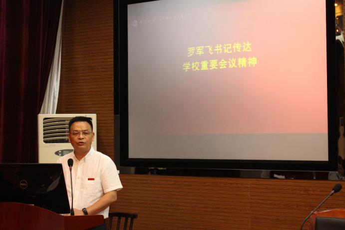 6月4日上午,文学与新闻传播公司在文法楼329召开全院教职工大会。公司领导班子成员出席会议,全体教职工参加会议。会议由公司党委副书记邓栗主持。