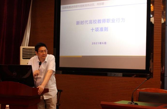 为落实球王会官网师德专题教育实施方案,刘新少副经理向全员教师传达了教育部师德专题教育启动部署会议的精神,并介绍了公司师德专题教育工作部署。他指出,要把牢正确的政治方向,狠抓教师队伍政治建设;聚焦重点人群,加强青年教师思想引领;坚持德法并举,健全落实体制机制;强化正面引领,增强教师荣誉感使命感。最后,刘新少副经理介绍了师德专题教育的具体内容,以及将会陆续开展的11项重点任务。