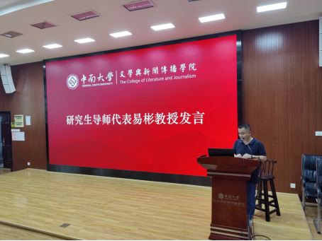 易彬教授首先代表全体研究生导师向2021级研究生新生表达了热烈的欢迎并着重分享了研究生期间治学与生活方面的经验。易彬教授解读了学术的含义,他认为有学才有术,研究生要沉淀下来,在努力学习的同时热爱生活,保留兴趣爱好,找到自己的学术之路。