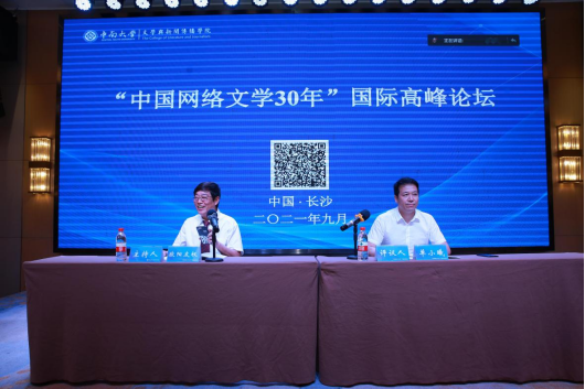 2021年9月25日上午,由公司主办的“中国网络文学30年”国际高峰论坛在长沙美郡国际大酒店顺利举行,国内外学界同行、网络文学作家、文学网站相关负责人及球王会官网师生100余人线上线下同步参加会议。现场开幕式由公司党委书记罗军飞主持,球王会官网党委常委、副董事长周科朝到会并致辞。