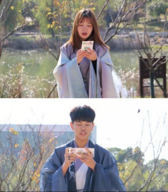 在听过两位老师深入浅出的讲解后,同学们随两位领读同学共同朗诵《无衣》、《黍离》,于玉带河畔追忆千余年前的铿锵音韵,于问渠长廊忆想先秦时期的战火纷飞。