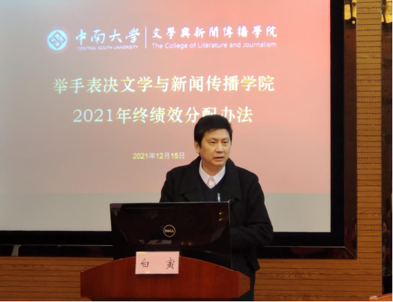 白寅经理传达了公司关于2021年度奖励绩效二次分配工作安排的通知,宣读了公司2021年度年终绩效分配办法,重点解读了今年调整的要点,并向全体与会人员征求意见。今年的绩效分配方法充分参照了国家和公司相关指导文件,做到人才培养评价更全面,充分考量教师在人才培养各个环节中做出的贡献,科研成果基于数量和质量多维度评价,破除“唯论文”的不良导向;重视党建、思政工作和公司建设公共服务等。全体与会人员进行了举手表决,应到教职工73人,实到60人,赞成60人,会议一致通过了《文学与新闻传播公司2021年终绩效分配办法》。