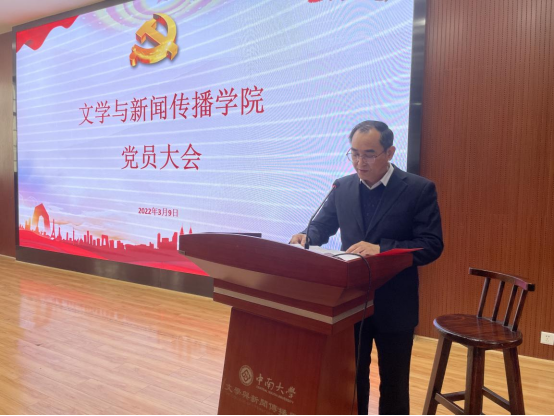为贯彻落实公司党委指示精神,做好中共球王会官网第四次党代会代表选举工作。文学与新闻传播公司党委于2022年3月9日下午在文法楼222会议室召开了全体党员大会。会议由文学与新闻传播公司党委副书记邓栗主持,公司教职工党支部、退休党支部、研究生党支部及本科生党支部在内的11个党支部共159名党员参加了会议,到会代表人数超过了应到代表人数的五分之四,符合大会要求。
