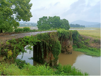 最后,公司调研团队参观了位于汨罗市大荆镇(古仑乡)黄道村的罗水女子桥。该桥系3孔石拱桥,横跨罗水支流蓝向河,全部以大块花岗石砌筑,浑然一体,造型古朴大方,青藤攀满桥身,秀丽端庄。据碑文记载,女子桥曾在明万历三十七年(1609年)重修,据此可以断定,女子桥建造年代在明万历三十七年以前,距今已有四百年以上历史了。该桥现为省级文物保护单位。罗军飞书记表示,文旅产业是乡村振兴的重要抓手,应当更多更好地开发当地历史文化资源,推进文旅融合发展。