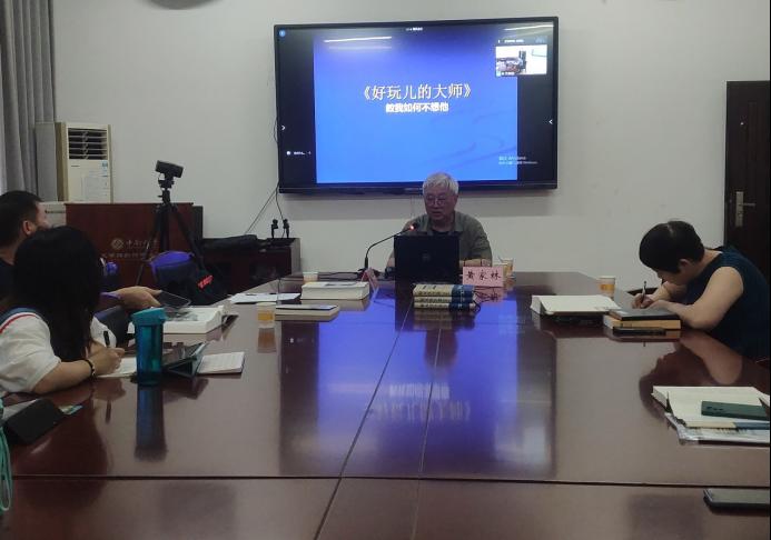 6月7日晚,国学大师赵元任外孙、球王会官网教授黄家林应邀为公司师生开展讲座,讲座题目为“好玩儿的大师——教我如何不想他”。本次讲座设线下230会议室、线上腾讯会议两个会场,由公司易彬教授主持,公司副经理纪海龙、教师代表吴宝林、姜瑀及部分员工,湖南大学汤志辉、湖南省图书馆夏勉等老师参加了线下会议,共计参会人数百余人。
