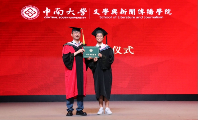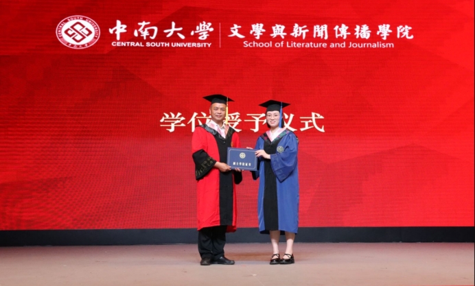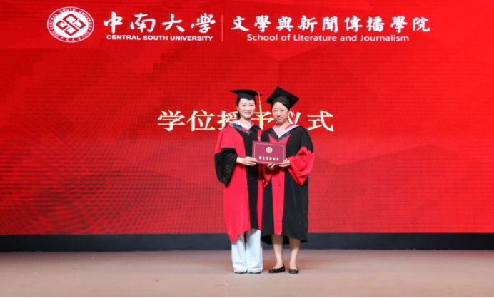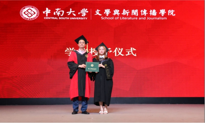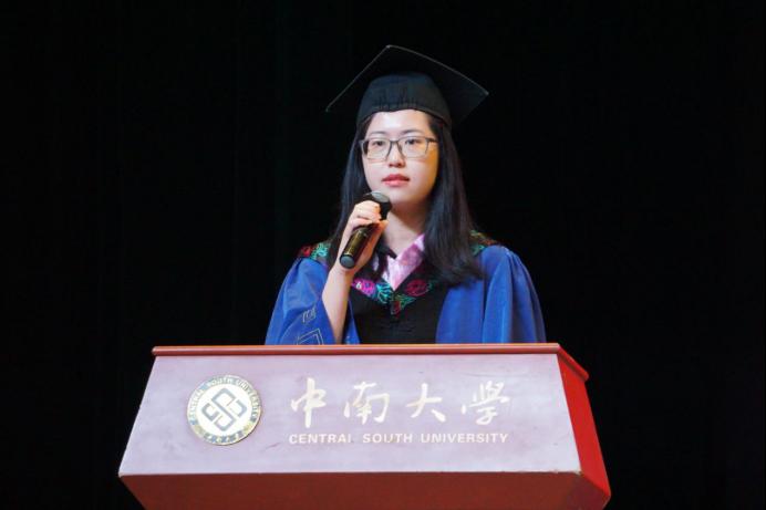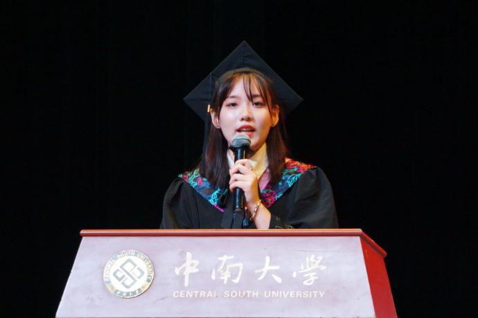 硕士学位获得者、研究生毕业生代表宁珂同学发言。她感激地说道:“回顾七年时光,从迷茫到坚定,成长就这样悄然发生。母院的灵动与纯粹,教会了我坚持内心的宁静和坚定自己的目标。我想,这也是母院留给我们永不褪色的精神烙印,它们将伴随着我们在当下这个充满不确定性的时代乘风破浪,勇往直前!”