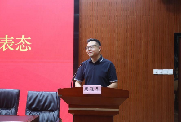 罗军飞书记代表公司班子表态,坚决拥护公司党委决定,热烈欢迎周谨平曾崟加盟公司领导班子,加强公司管理力量,要深入学习贯彻公司第四次党代会精神,为建设特色鲜明的世界一流大学做出文新院更大的贡献。