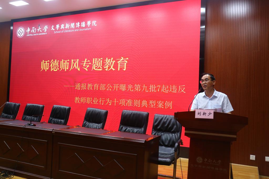 接下来,刘新少副经理领学了师德师风专题教育文件,通报了教育部公开曝光的第九批7起违反教师职业行为十项准则典型案例,并从宣传意识形态角度提示了相关舆情预警。他表示,公司将以有力举措巩固师德师风建设成果,维护教师队伍良好形象,同时希望高度重视暑期安全工作,常态化抓好疫情防控,守好意识形态阵地,为下学期各项工作顺利开展做好准备。