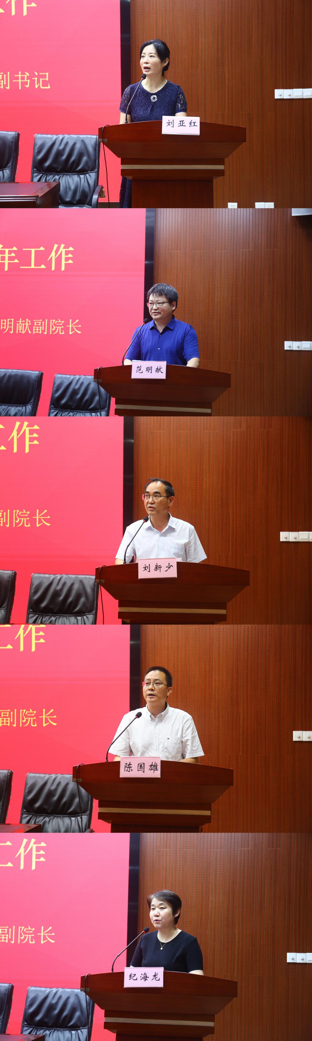 随后,公司班子成员分别总结了各自分管领域的上半年主要工作情况。刘亚红副书记向全院介绍了2021-2022学年员工工作完成情况,并对公司在思想引领、学风建设、文化育人等思想阵地取得的成绩进行了汇报和表扬;范明献副经理和陈国雄副经理分别从教学、教研、教改三个方面汇报了研究生和本科生工作完成情况,对取得教学教改成果奖项的老师们予以表扬,并希望大家继续鼓足干净、力争上游;刘新少副经理重点介绍了公司意识形态和新闻宣传工作,并就加强意识形态阵地、强化责任意识和问题意识等提出了要求;纪海龙副经理主要从科研工作方面,就上半年公司科研项目申报和科研成果进行了汇报。