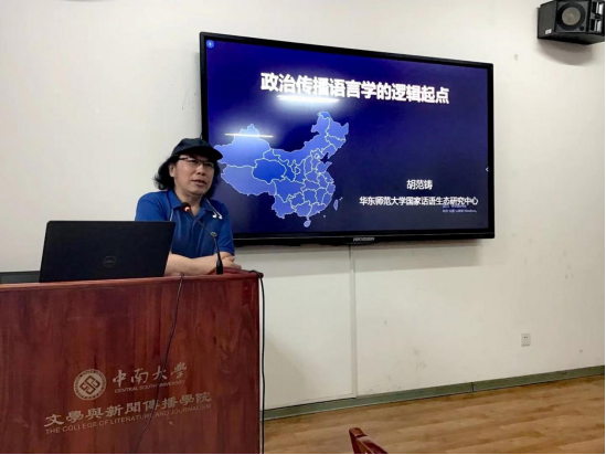 华东师范大学国家话语生态研究中心主任胡范铸教授以《政治传播语言学的逻辑起点》为题进行主题报告。他围绕“何为政治传播语言学?政治传播语言学何为?”核心问题展开论述。他认为,政治传播语言学的应有目标是既积极推进各个利益集团之间为利益最大化的非零和博弈;更自觉推动每一个个体的生命价值和存在意义的实现;推进全人类的根本利益与永续发展的实践;推进在鼓励“每一个个体自由发展”条件下的人类命运共同体的构建。基于这一目标,政治传播语言学的根本问题是“以语言推进传播进而推进政治沟通、保障人类每一个体生命价值和全社会和谐发展何以可能?”根据这种种问题,则需要一系列理论方法的选择和设计。总而言之,政治传播语言学是根据对于“政治”“传播”“语言”的重新定义获得的一种新的理论范式。