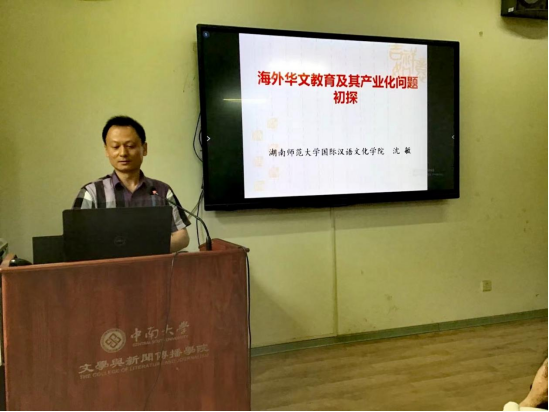 湖南师范大学国际汉语文化公司沈敏副经理以《海外华文教育及其产业化问题》为题发言。他简要介绍海外华文教育史以及传统华文教育民间性、公益性、自治性、封闭性等主要特征。他指出,海外华文教育产业具有标准化、正规化、专业化程度较高,辐射主流社会和其他族群的能力增强等优势,但存在华人社会保守、本土华文教师队伍亟待充实、多样化华文教育产品供给不够等问题。他表示,实践证明,产业形态的华文教育既可以发挥其经济实用功能,也可以发挥人文交流和文化传播功能。事业与产业联动,有利于增强华文教育的发展活力,促进其正规化、专业化,也有利于推动汉语和中国文化走向世界。