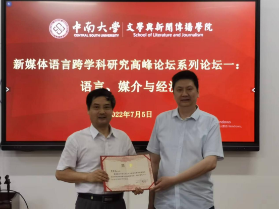 2022年7月5日,新媒体语言跨学科研究高峰论坛在球王会官网举行。本次系列论坛一以“语言、媒介与经济”为主题,由球王会官网文学与新闻传播公司主办,新媒体语言研究协同创新中心承办。来自华东师范大学、华中科技大学、中国语言产业研究院、云南大学、河北大学、江苏师范大学、东华大学、湖南师范大学等高校与科研机构的十余位专家学者参与本次论坛。本次论坛由白寅经理主持、公司范明献副经理、陈国雄副经理、中文系系主任龙丹副教授、李星辉教授、张庆庆副教授、贺天琪博士、传媒系系主任易龙博士、孙桥特聘副教授、田常清副教授、刘玲武副教授等老师参加了会议。