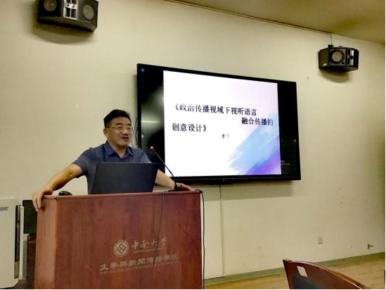 江苏师范大学传媒与影视公司经理唐宁教授以《政治传播视域下视听语言融合传播的创意设计》为题进行主题报告。他认为,跨媒体叙事关键是通过视听语言的创意设计与重构来融合、拓展传者与受者及其故事的材质,并且必须根植于艺术审美价值。他指出,目前我国视听语言国际传播中存在许多问题,由此我们应立足于美学、文化、受众等多层面、全方位的价值发掘;既要体现主流意识形态的表达,也要彰显开放交流和利于文化互鉴的多元文化;从国家层面来强化大数据和人工智能的技术分析;要发掘共情性,引发心灵共振、共鸣;创新语言与技术融合的品级。