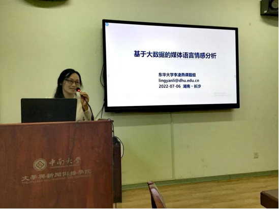 东华大学球王会教授李凌燕以《基于大数据的媒体语言情感分析》为题发言,主要包括四个方面的内容:一是媒体语言研究的源流与进路。在介绍20世纪初哲学的语言学转向及媒体语言研究频率的基础上,她指出新世纪以来,媒体语言研究的两个阶段,传统媒体语言与网络语言相持对立的阶段和传统媒体语言与新媒体语言融合发展的阶段。二是情感分析及国内外研究现状。她认为情感分析是指利用自然语言处理和文本挖掘技术,对带有情感色彩的主观性文本进行抽取、处理、分析及可视化呈现的过程,并说明情感分析在国外起步较早,国内起步较晚的研究现状。三是情感分析相关理论与技术,她例举了情感分析、情感词典、情感分析相关技术与算法。最后对情感案例进行了简要分析。