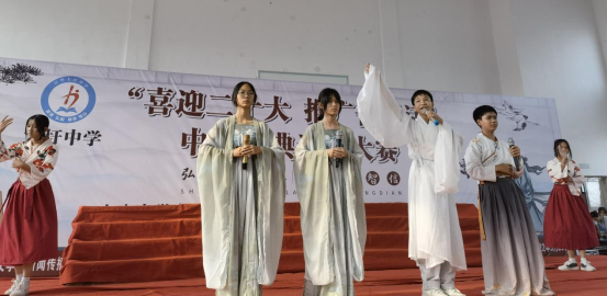 随后,来自23个班的大圩中学员工,以中华经典文学作品为内容,辅以歌舞、吟唱、舞台表剧等多种艺术形式,为大家带来了精彩的诵读表演。
