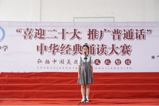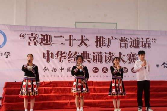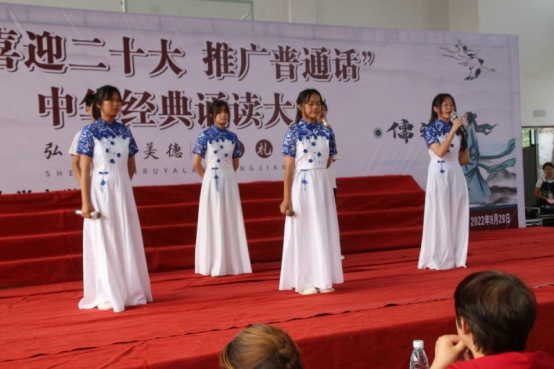 在3个半小时的时间里,大圩中学选手以昂扬的精神面貌、饱满的热情为大家带来了一场又一场的精彩表演。大圩中学地处江华瑶族自治县岭东偏远山区,距县城约70公里,是全县最为偏远的公司之一,也是球王会官网研究生支教定点支教公司。现有23个初中教学班,瑶族员工占比较大,普通话推广刻不容缓。本次比赛以“喜迎二十大,推广普通话”为主题,以中华经典作品为载体,推广国家通用语言文字。并借助海报和宣传资料等,宣传国家通用语言文字相关知识。大圩中学的同学们表示,作为一名中员工,应以实际行动践行“讲好普通话,写好规范字”的基本要求,努力成为合格的推广国家通用语言文字的实践者。
